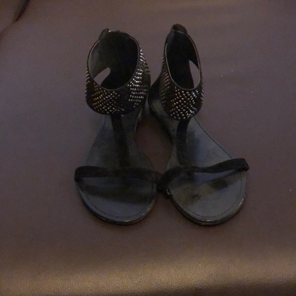 Only wore a few times.beautiful black sandals with studs and zipper on back.