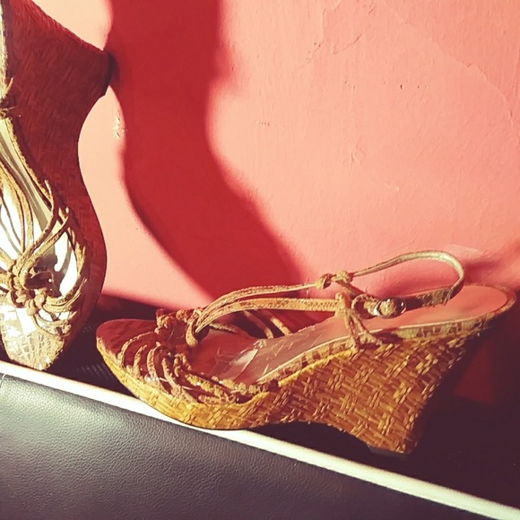 Cognac Anne Klein woven leather wedge heel sandals. Worn three times only. Heel height 5"