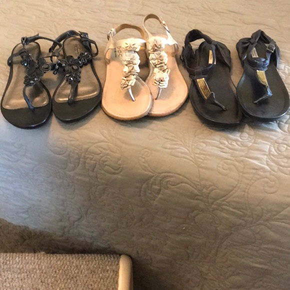 Kenneth Cole, Born, and Vera Wang sandals with normal wear on bottom. 3 pair 15.00 The Born size is 7m and the others are 71/2m.