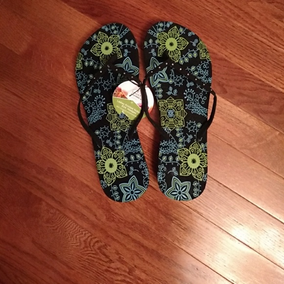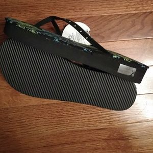 Brand new size 9 -10. Faux diamond chips on straps black sides and bottom multicolored green blue and black inner soul
