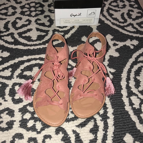 Brand new dusty blush sandals, they wrap around your ankle, suede material.