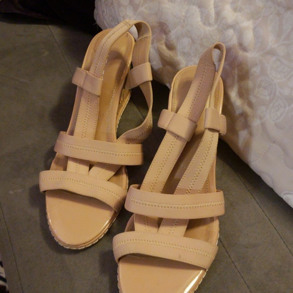 Tan wedge sandals worn once