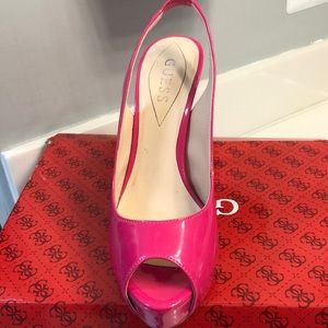 Bright pink high heel sandals