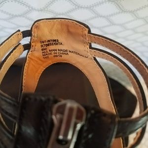 Zip up, Black Leather Sandals, Great Condition, Barely Used, Thick Cushion Padding, Comfortable Fit
