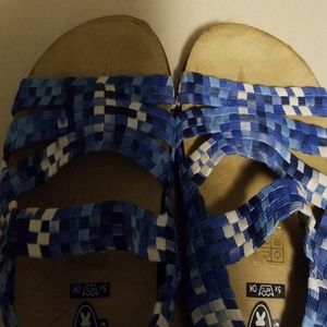 Received as gift, tried on and walked around inside home one time. Did not fit, so my loss is your gain. Cute Blue & White check pattern. Compare to US size 7.