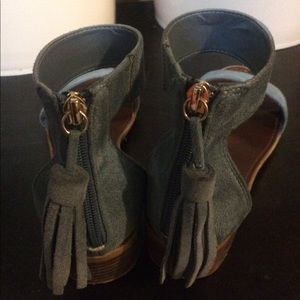 Blue, strappy, and totally trendy with tasseled zippers for closure