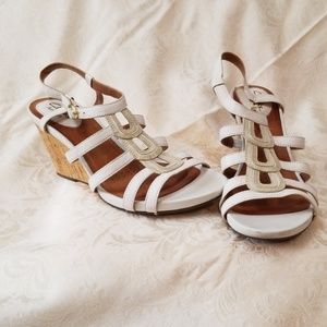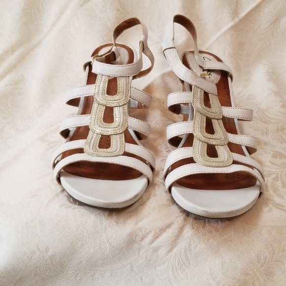 They are white leather block heel sandals. Size 9 1/2. And they are in great condition!