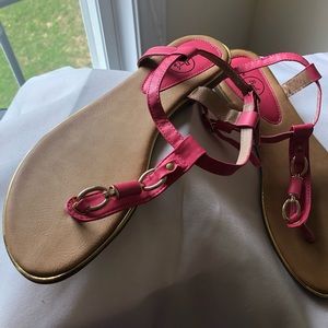 Open toe, thonged toe sandals with side buckles. Brand new never worn.