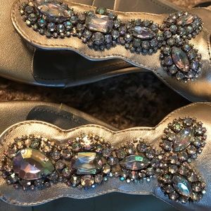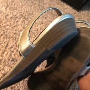 Wedge heel sandals in GUC; champagne gold color with all the stones still intact. Minor scuffs; see pictures.