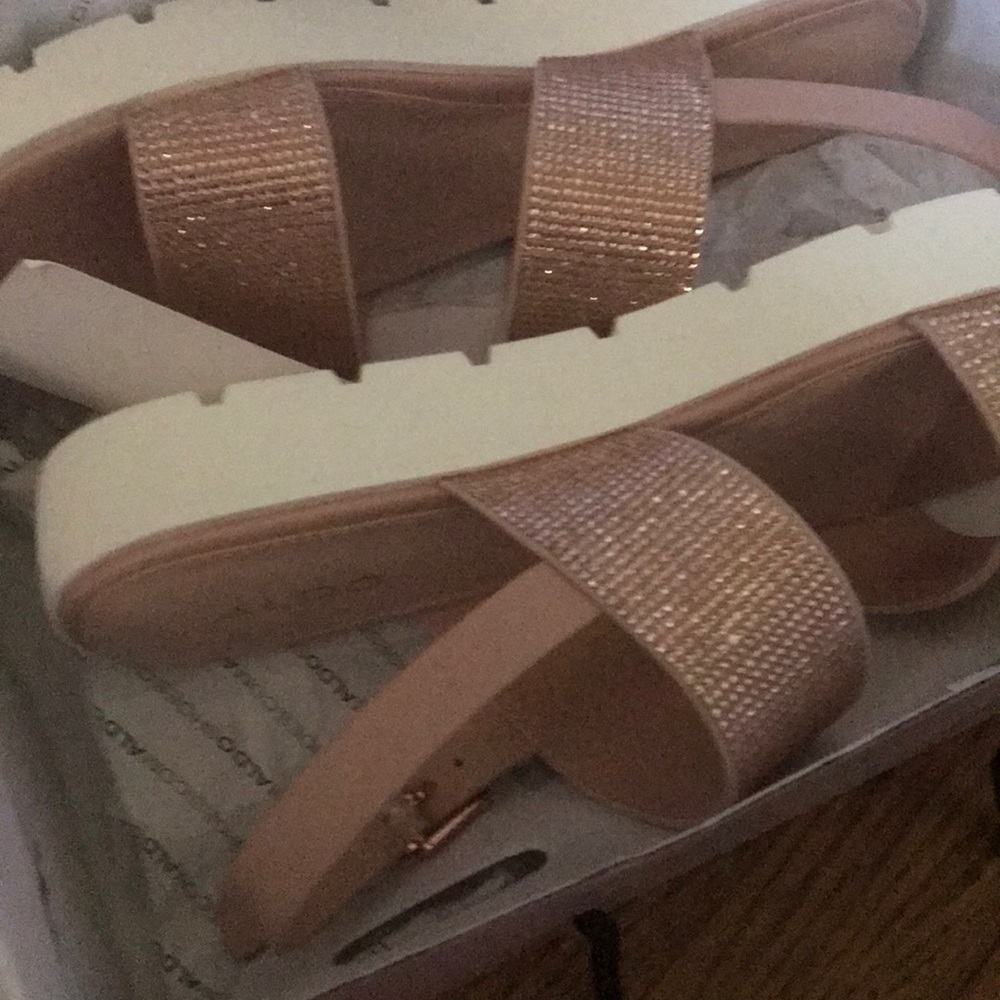 Brand new still in the box Aldo sandal with strap! Rose gold color