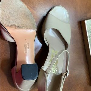 Salvatore Ferragamo sandals 2 inch heel gently used nice neutral color to go with anything.
