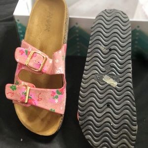 2 strap punk flier print sandals worn once