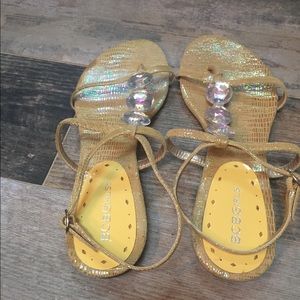 Beautiful BCBG Girls sandal. Mustard color with fabulous gems on top to add gorgeous flair!