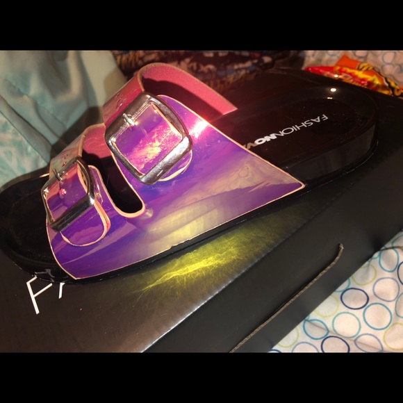 Cute comfortable sandals from fashion nova! , very easy to wear better off in carpet because could be very slippery !.