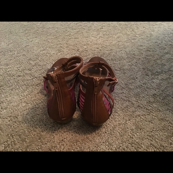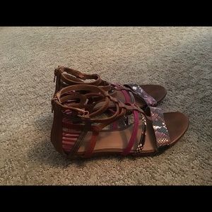Congrats the very flat colorful sandals. Bought in Vegas. Worn once. Zip up back