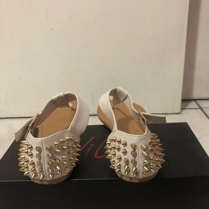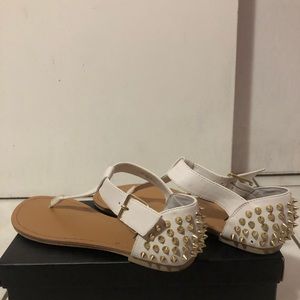 White sandal with gold spikes in good condition with no scent