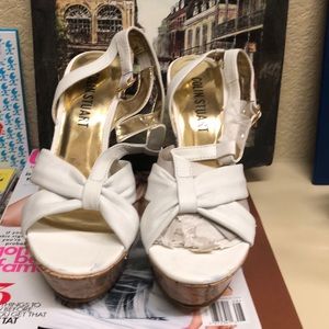 Never worn white leather Colin Stuart high wedge sandals. Perfect condition