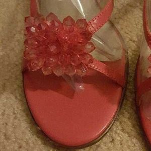 Fuschia Slip-on Sandals with beaded flowers. Insoles are faded. Heels, shoes and straps in great shape. **Buy the turquoise sandals you can have these for free.**