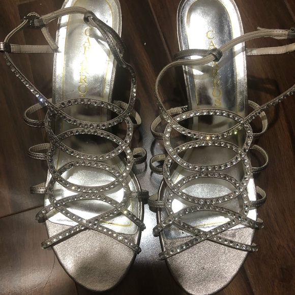 Silver short heeled sandals