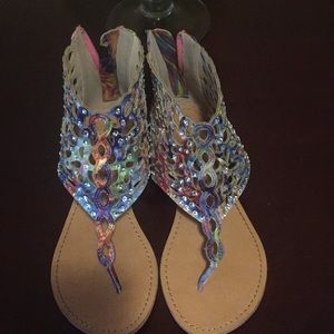 Rock&Candy “Arvita” girls sandal. Beautiful vibrant colors. No jewels are missing. EUC youth size 3