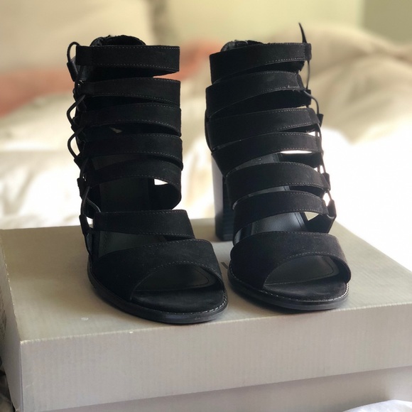 An open toe, strappy sandal featuring criss cross straps. open at toe Convenient back zip closure Grip Back zip closure is lined for comfort.