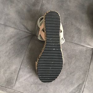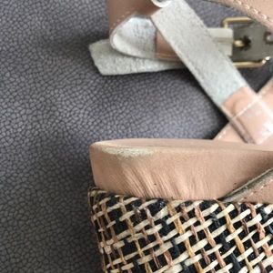 Beige wedge sandals. With neutral beige leather uppers & wedges that are multicolor fabric these shoes are ready for fun whenever you are!