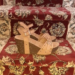 Summer low heel wedge sandals. Perfect to wear at an outdoor event!