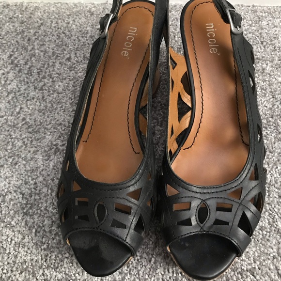 Black open backed,heeled sandals have been worn a handful if times. Still look like new!