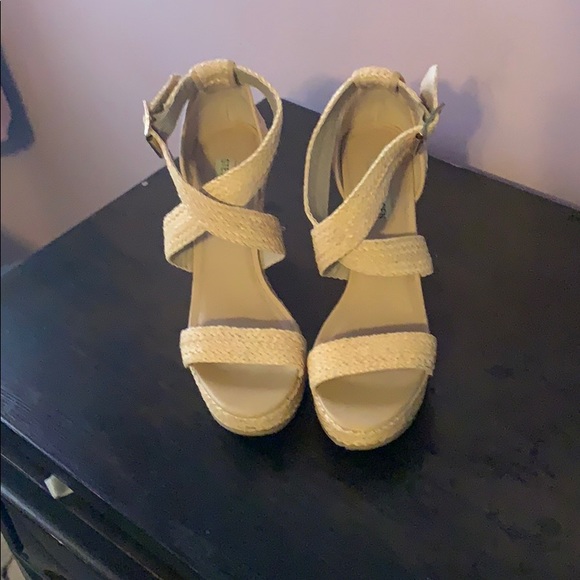 Steve Madden Natural colored straw woven platform wedge sandals