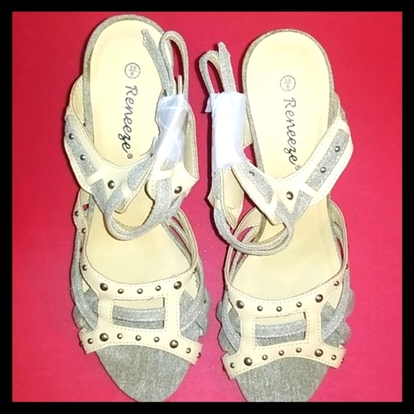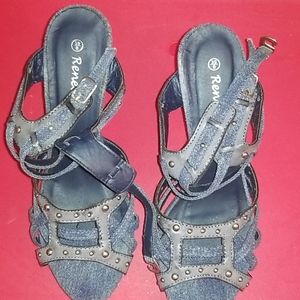 NWOT light Blue and Yellow Sandals, 4.5" heels the Navy Blue was worn Once see picture
