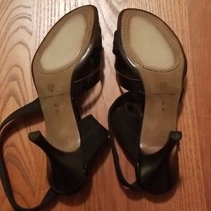 Patent Leather and Stretch Band Criss Cross Strappy Sandal 3" Heel