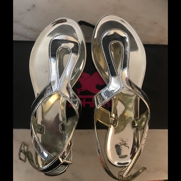 Silver flat sandals Worn once Size 7 women Still in box