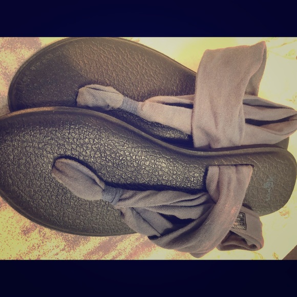 Grey, thong sandals. Sanuk Yoga Sandals. Barely worn and still has lots of wear left.
