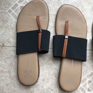 2 pairs of black and blue sandals, size 9. In perfect shape, just trying to downsize my shoe collection.