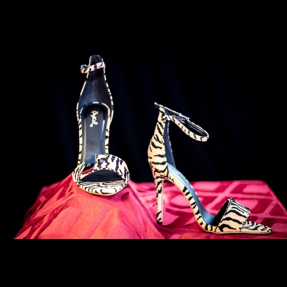 Suede tiger print, ankle strapped sandal Heel 4 1/2 inches