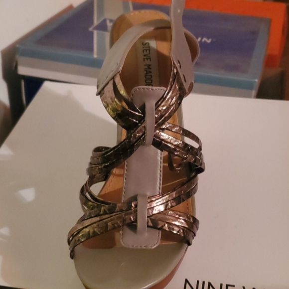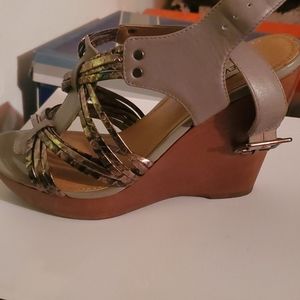 Gray wedges with gold metallic cris cross straps. Worn twice