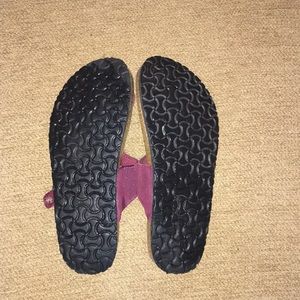 Maroon north side sandals, size 10. They have a suddle sparkle to them. They are comfortable think I bought at ems in Asheville. I’ve worn them about 8x or so.