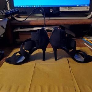 Blue suede elastic straps 4" heels and never worn