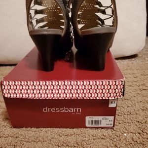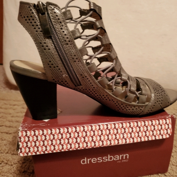 GUC Sz 8.5 silver cage sandals, minimal wear. The top of the sandal has elastic "laces" for a very comfortable fit. Very cute on.