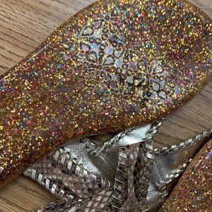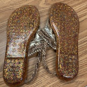 Leather thongs with plastic soles. Beautiful braided detail. Good condition.