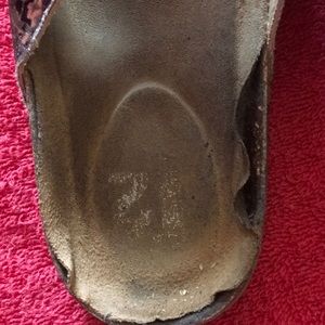 2 buckle, 2 strap sandals, some extra wear on left shoe.
