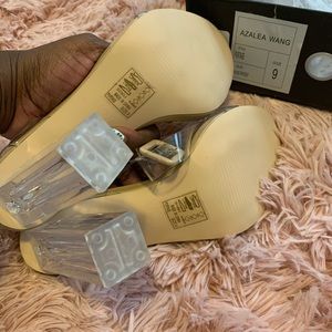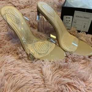 New, never worn. Clear/neutral and tan color. Perfect to wear with any color. Straps wrap around the ankles.