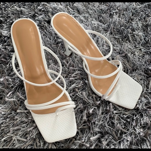 White sandals with faux snakeskin texture and squared heel. New never worn Comes with box '