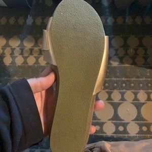@lpv052661 it’s kind of a champagne gold, light. And a brushed silver buckle that blends. Beautiful summer sandals