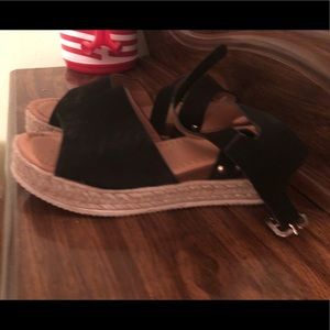 Black platform sandals. Shoes size 37 same to a 6, but fit more as a size 7. Only worn once