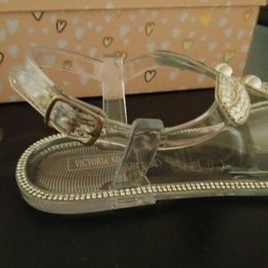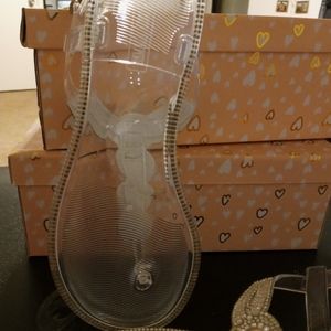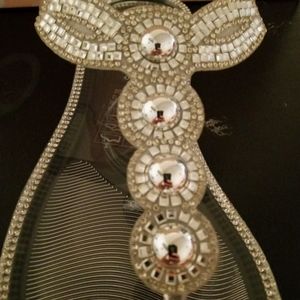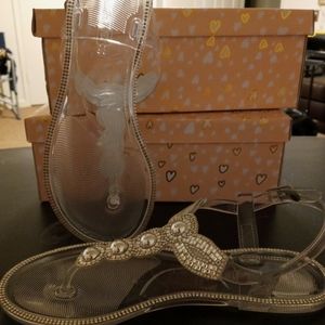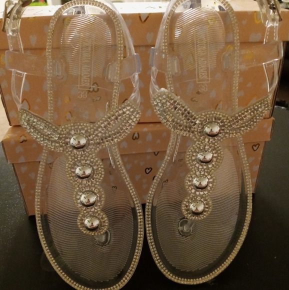 Clear rhinestone diamond like with buckle really cute great for summer they are plastic waterproof. Great for summer dresses, shorts or beach. Size 7 only 1 left