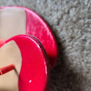 Red Tory Burch sandals 👡 in very good condition. Small, scuff marks on one shoe shown in pictures