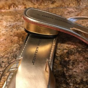 Gold leather sandals with jeweled treatment. Only worn a couple of times.