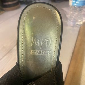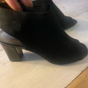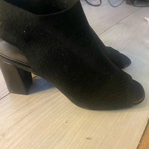 These cute stretchy material black heeled sandals are very comfortable with a 2.5 in thick heel. Worn once so like new condition. Thanks for looking