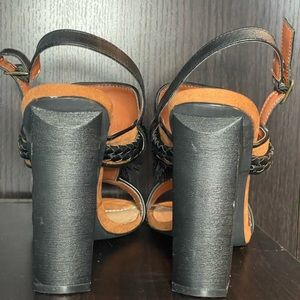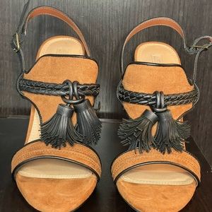 Camel & Black Block Heel Sandals